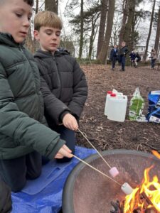 We also enjoyed gathering around the campfire, where we toasted marshmallows and made delicious s’mores. It was a fantastic way to learn new skills, work together, and enjoy the outdoors.