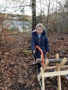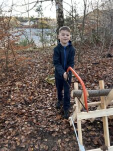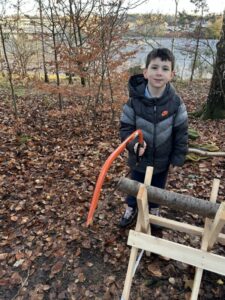 This term we have been taking part in Forest School, spending lots of time exploring and learning in our wonderful wooded area. One of our favourite activities was using the bow saw and sawhorse—under careful supervision—to create our very own tree cookies.