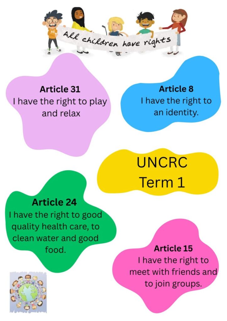 For Term 1, we have chosen to focus on four key rights. These rights will be explored through our daily routines, play experiences, and interactions, helping children understand what their rights are and what they mean in practice.