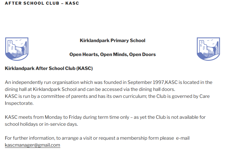 Kirklandpark After School Care (KASC) (Appendix 27)