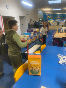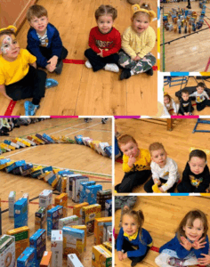 Children In Need We raised £183.62 for children in need and completed a cereal box domino challenge. These boxes were then donated to our local food bank. We sent 274 boxes of cereal to those in need.