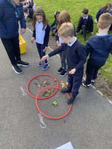 Wallace says, ‘Me, Gabs and Jaxyn were finding leaves and sorting them using the hoops.’