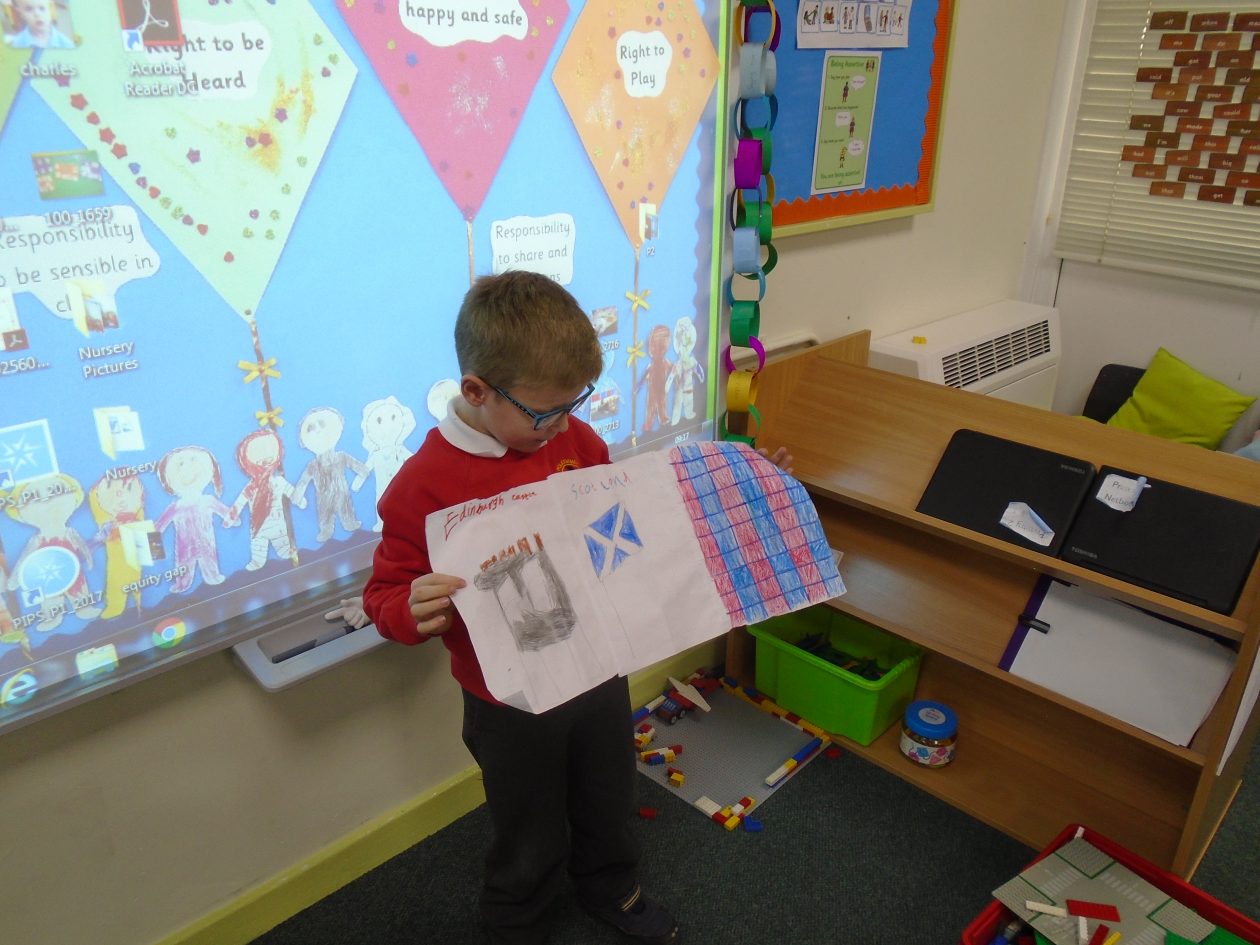 Caiden drew Edinburgh Castle, Scotland Flag and Tartan