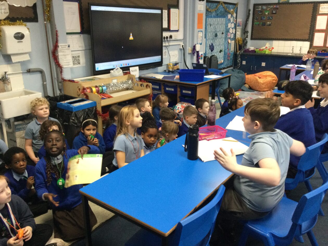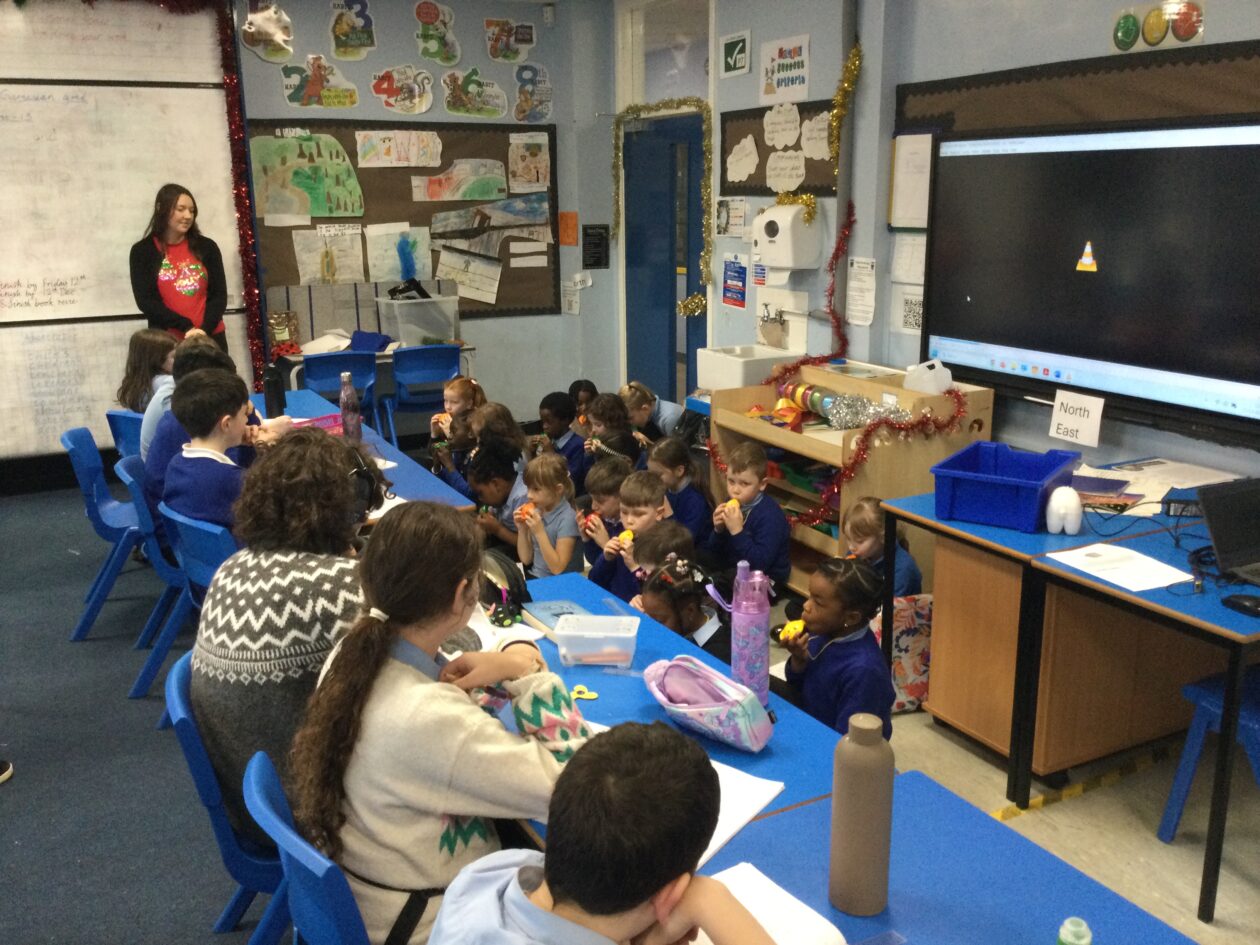 Today P3 visited other classes in the school to share their ocarina skills, treating classes to a rendition of ‘Jingle Bells’.