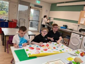 Keeping active has been very important both in and out of school as well as increasing our independence and developing skills in communication, and growing in confidence. Cross class PE groups have been lots of fun, working together with friends and adults from across the secondary school, and learning new skills. Some pupils have also been back on the Innowalk, and quite literally making great strides in progress here!