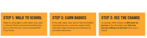Pupils will log daily journeys to school on the system. The WOW Travel Tracker also confirms which pupils have walked enough to earn a badge each month and these key statistics can be used to earn your school a Modeshift STARS award.