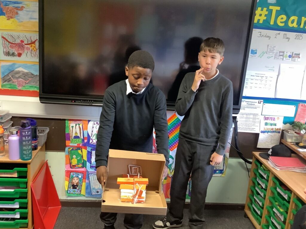 Primary 4 created Viking longships using blocks during their outdoor learning lesson.