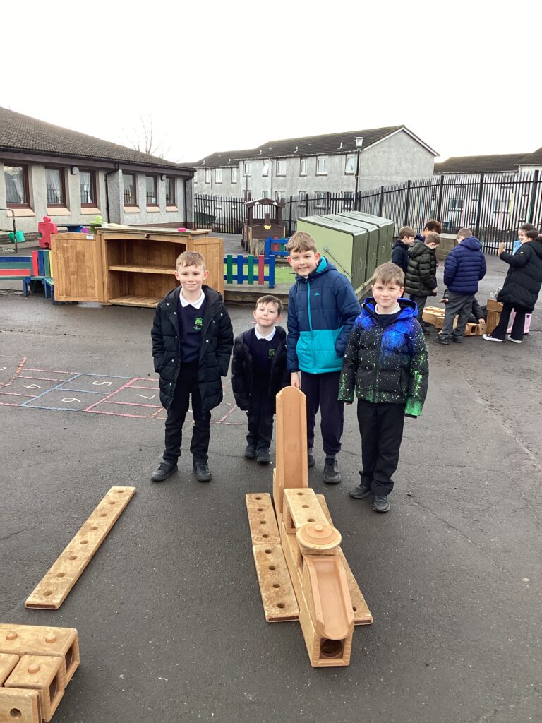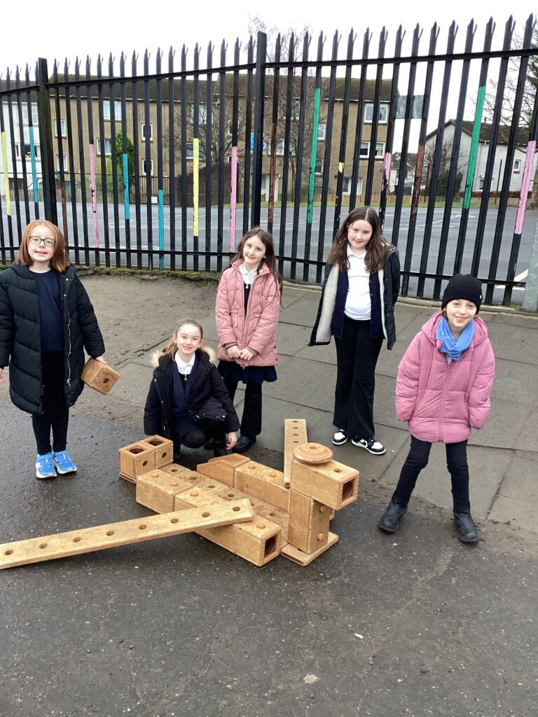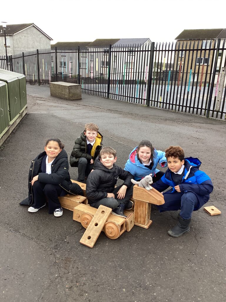 Primary 4 created Viking longships using blocks during their outdoor learning lesson.