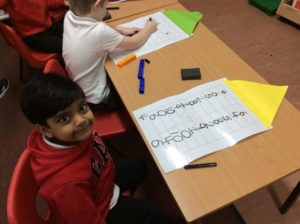 During smart-start the children have been using magnetic letters to make common words and then practiced writing the words on different coloured paper.