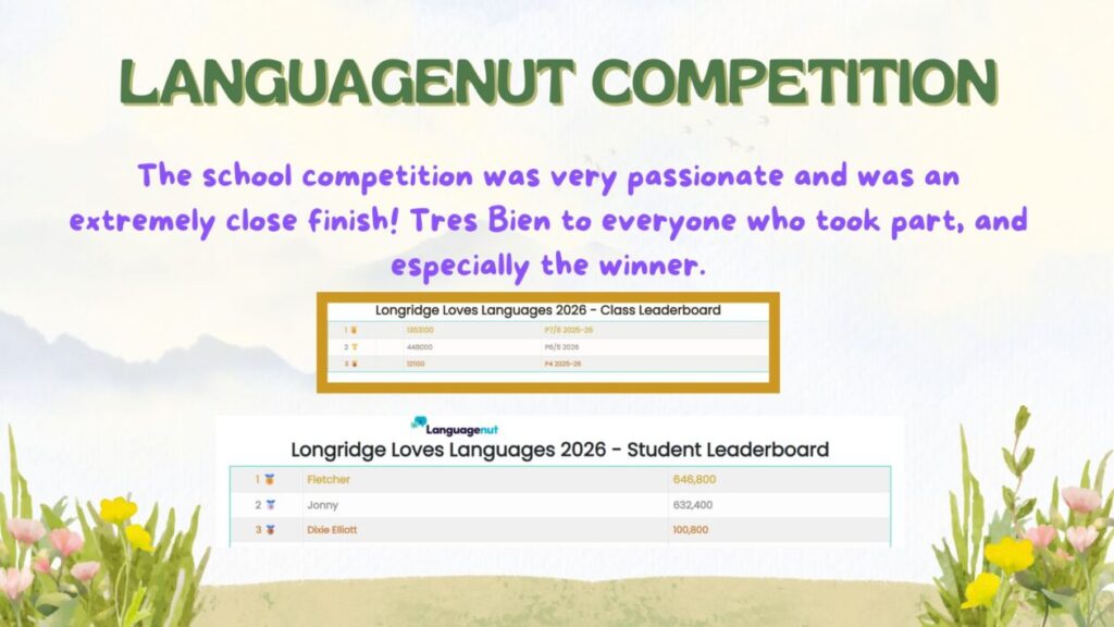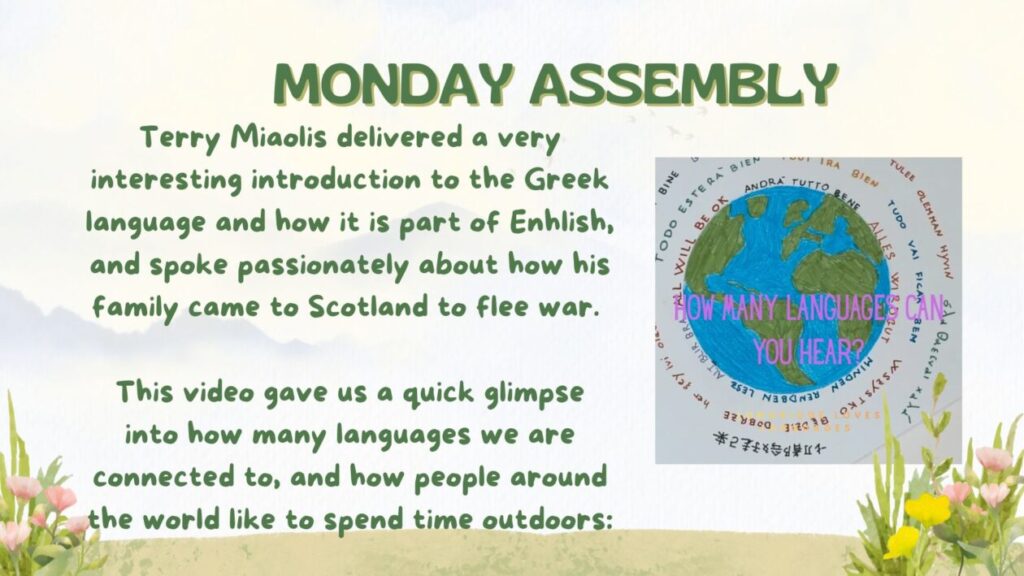 We celebrated Scotland Loves Languages Week 2026 with a theme of ‘En Plein Aire’ – outdoors. Unfortunately the Scottish weather meant lots of outdoor plans had to be adapted to somewhere a little more sheltered, but the languages explored in just one week was very inspiring!