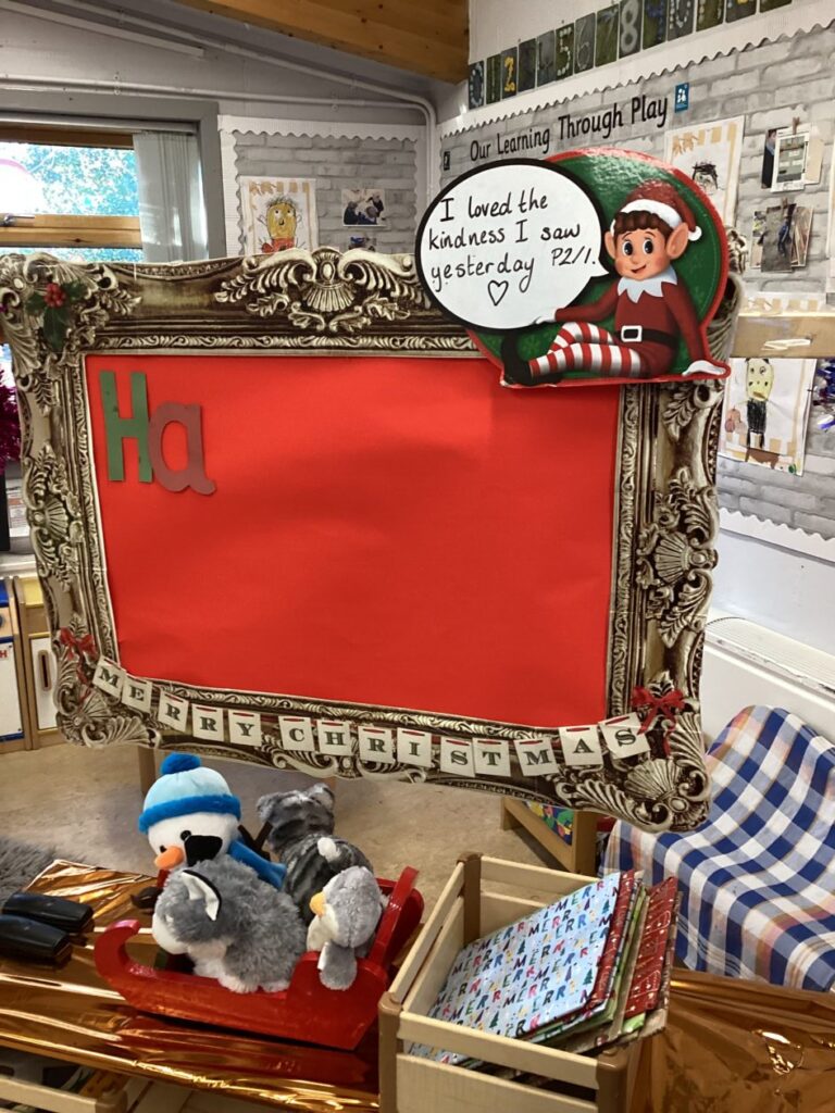 P2/1 are getting fully into the Christmas Spirit! We have updated our home corner to include a Christmas Tree, which children love to redecorate every day. Our writing table has become a Christmas Post Office, and we’ve been using our developing writing skills to write christmas cards and lists to post in our mini post box. We even have a new friend called Elfy, who has started bringing us a letter every day. We wonder what it will spell out!