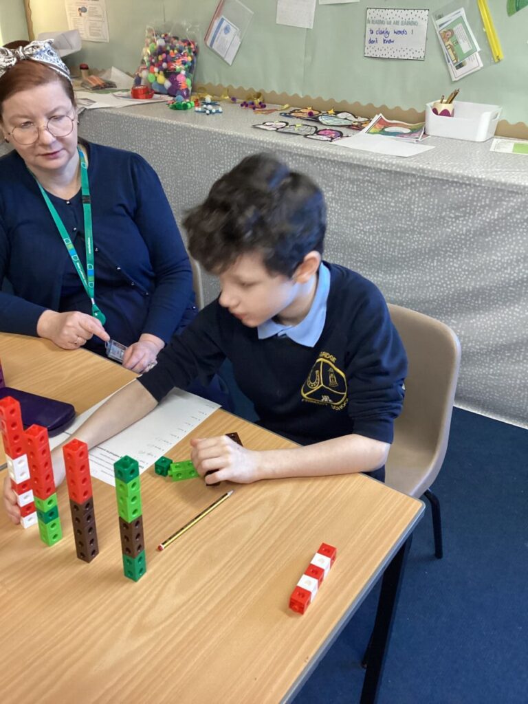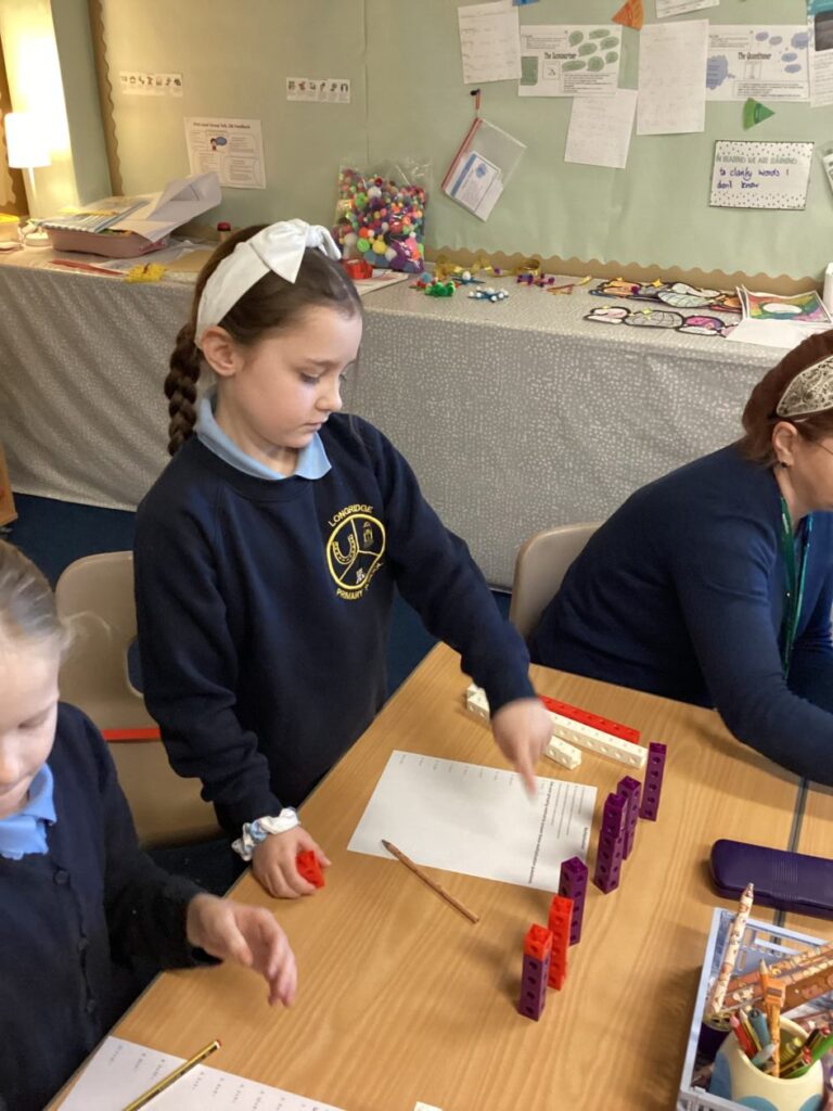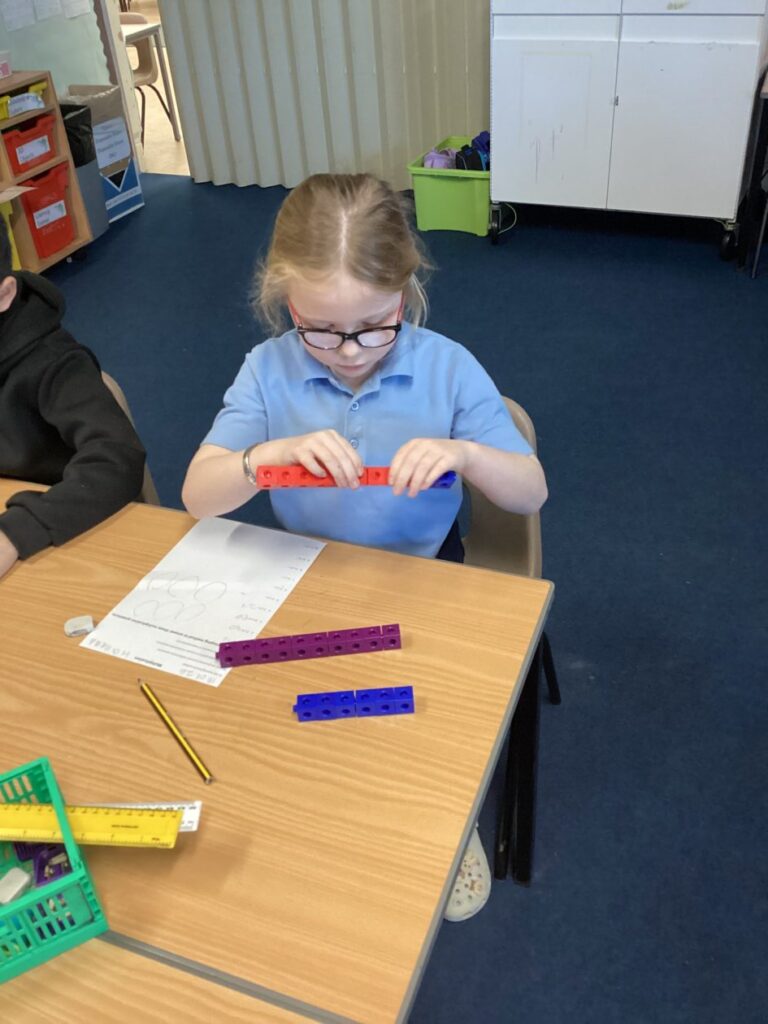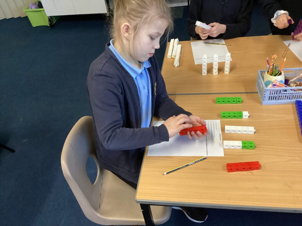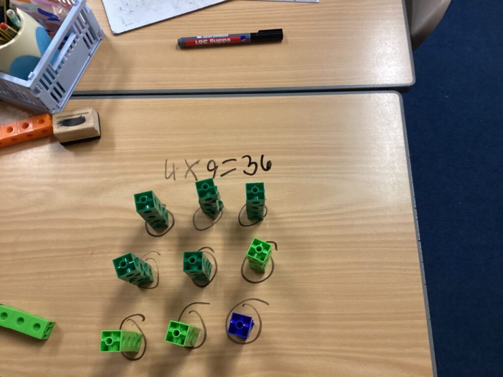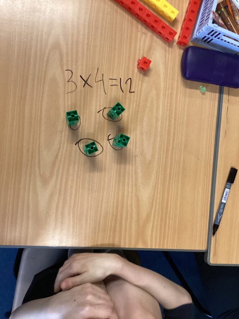 P4 have been learning multiplication this term. We have been practising different methods to help us work out multiplication questions. This week we focused on grouping using cubes and practising our repeated addition. We used our critical thinking skills to decide how we wanted to group them and used our repeated addition to find the answers. We used our communication skills to share our learning with the class.