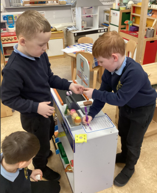 Everyone is having lots of fun applying their knowledge in our lovely new role play shop!
