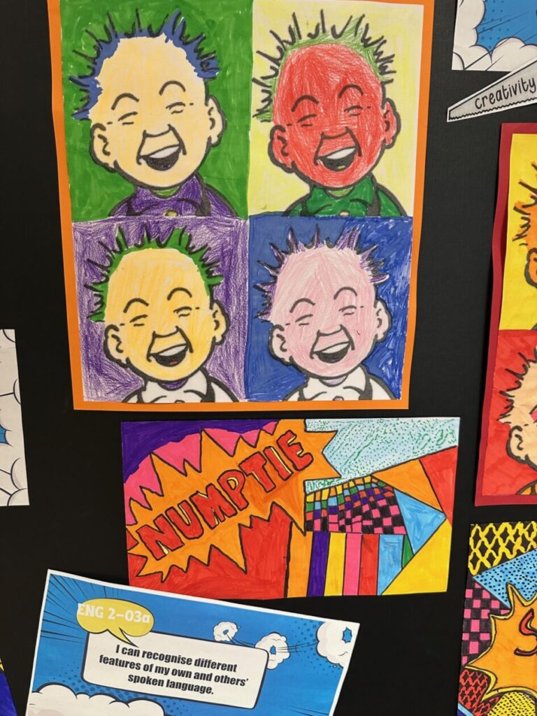 P7/6 have been learning about the Pop Art Style. We made links to our learning in literacy about Scots Language and the icon, Oor Wulllie and created some recreations of familiar pop art, with a Scots twist. We also added some of our favourite Scots words in the pop art style. It’s awfy braw!
