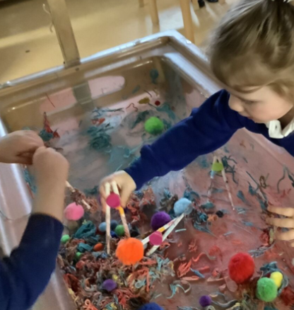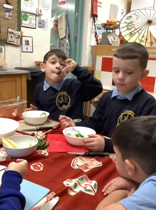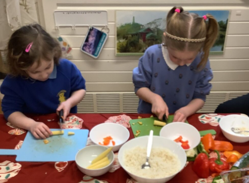During Collaboration Hour the nursery and P2/1 class learned about the celebration of Lunar New Year that is coming up soon in Chinese culture. Nursery and P1 children enjoyed a range of options including costume-play, dancing, sensory exploration, traditional games and woodworking their own dragons! P2 children researched some key elements of this celebration, and used their presentation skills to teach the younger children what they learned. All children had the chance to enjoy some healthy snacks related to the event, with several children discovering a new taste they enjoyed!