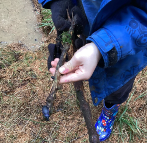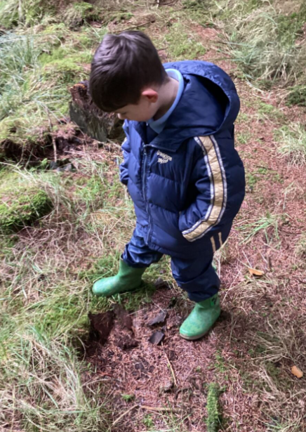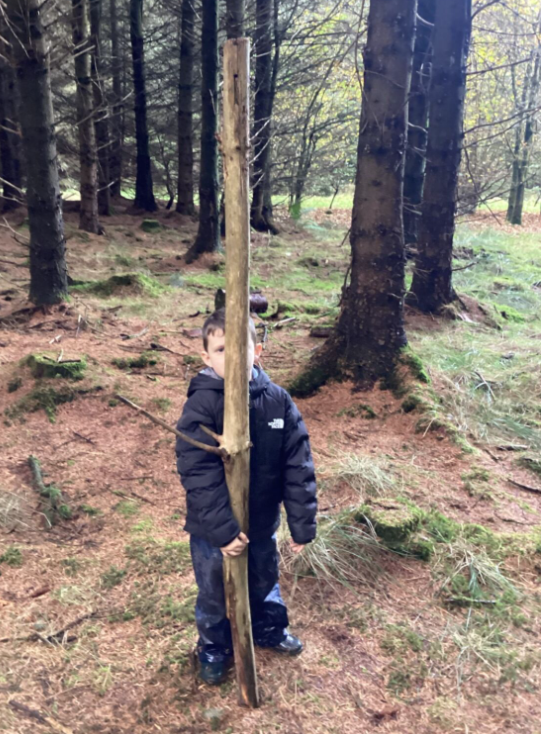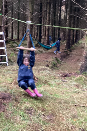 P2/1 had their second session with Kids Gone Wild this week, and the skills development and imagination they showed was fantastic. Children found Big-Foot tracks and rainbow fox houses in the ground, developing their talking and listening as they shared exciting ideas and discoveries. They climbed trees, rocked in hammocks and flew down a zip line, building their gross motor skills. They collaborated to take turns, build dens and create treasure trails with arrows and an ‘x’ marking the spot. But most of all, they had a fantastic, memorable day in nature together.