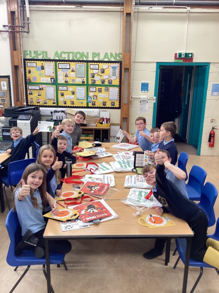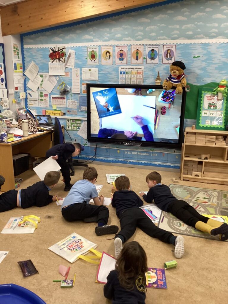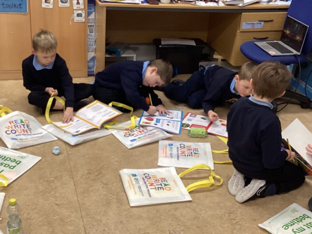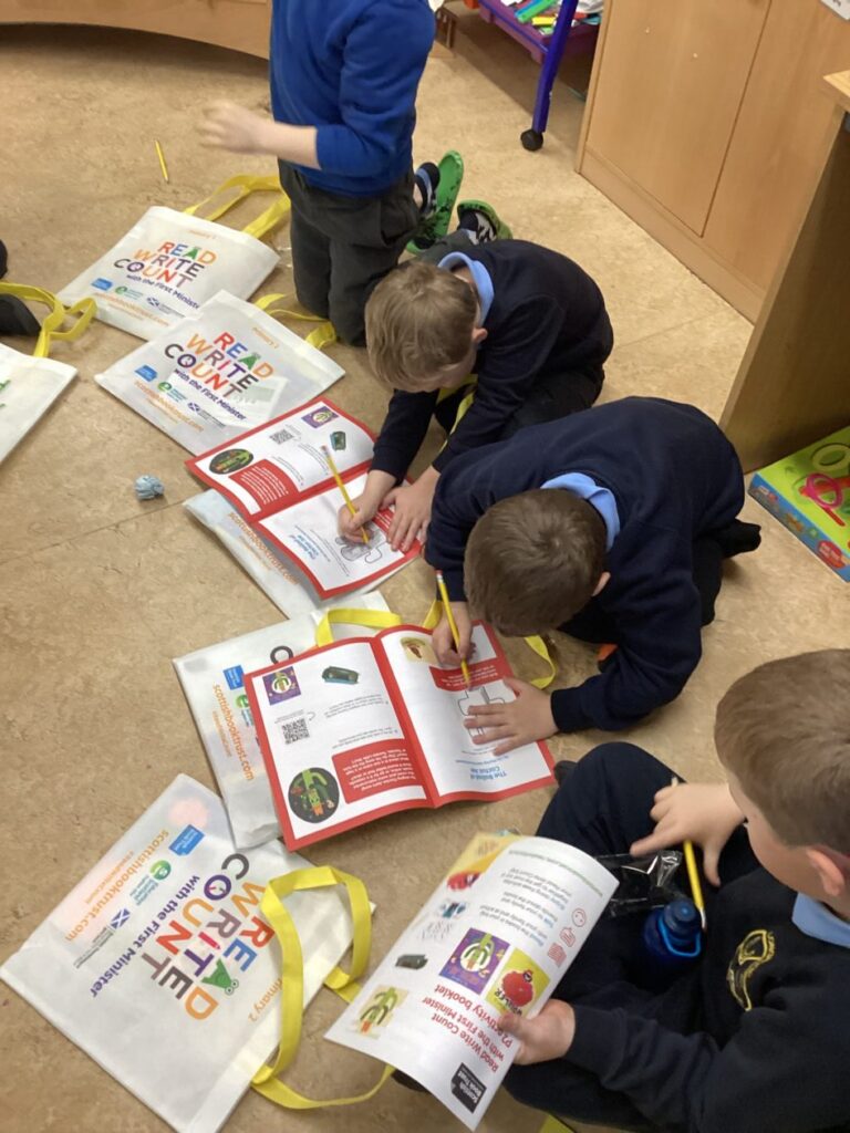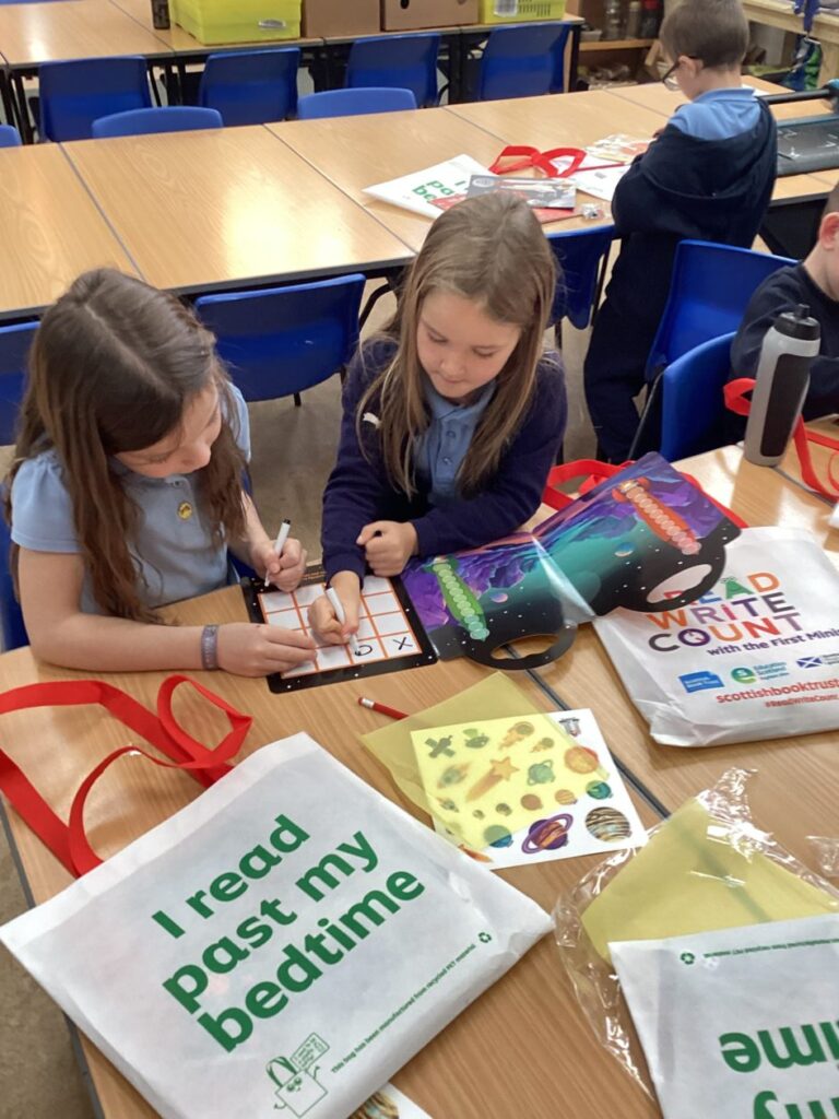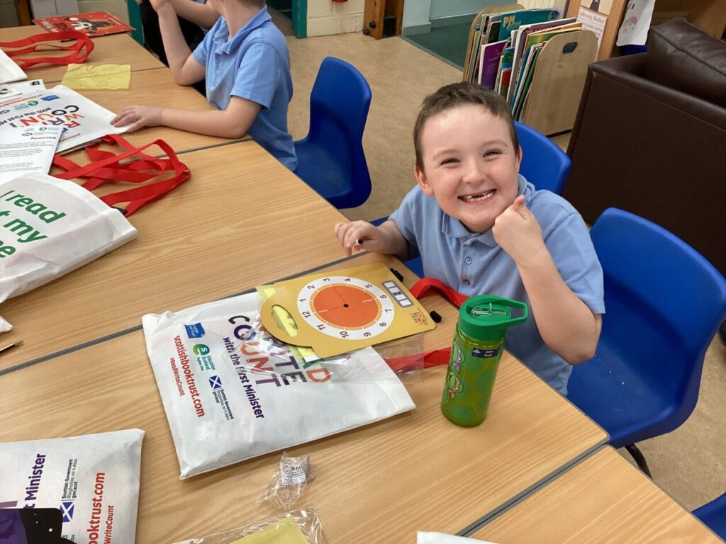 P2/1 and P3/2 are having a great time celebrating Scottish Book Week! On Wednesday we had a book bag gifting event, where every child received a bag of new books and games from the Scottish Book Trust. We had so much fun reading our new books, playing games and drawing the characters with online help from one of the illustrators.