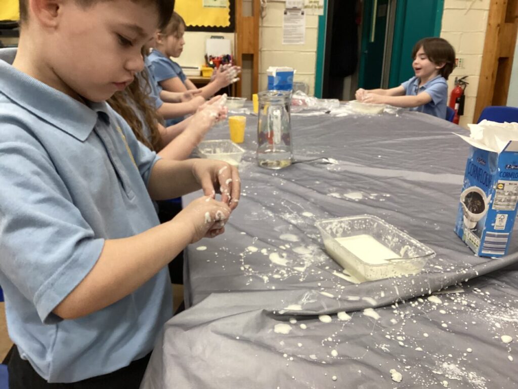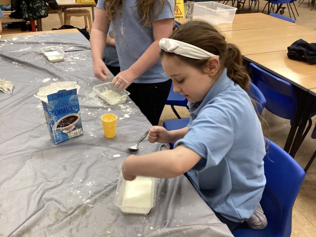 The afterschool slime club had great fun today making oobleck. We were all amazed at the texture and consistency of oobleck. It’s a non Newtonian fluid that acts as both a solid and a liquid. It it’s made from cornflour and water-simple!