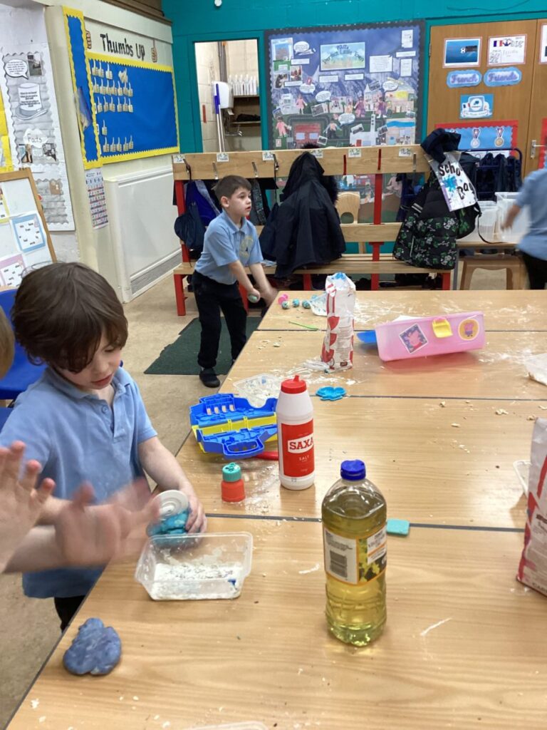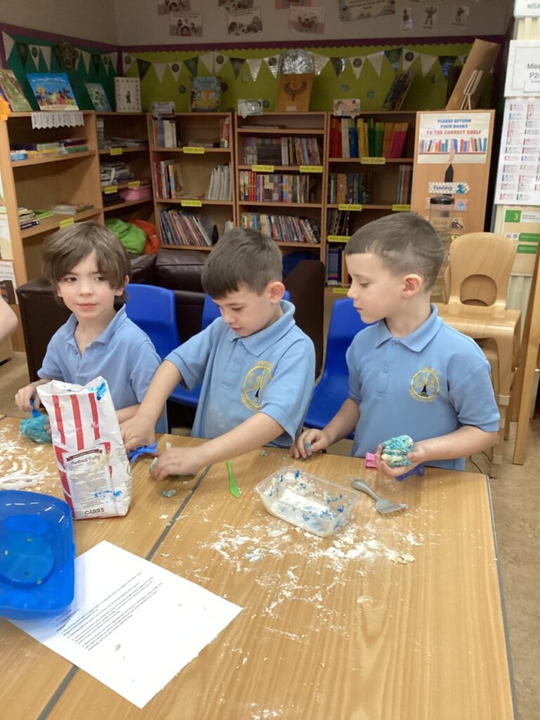 Slime club became play dough club today for our last session. We measured our flour, sale, oil and water and then got mixing.