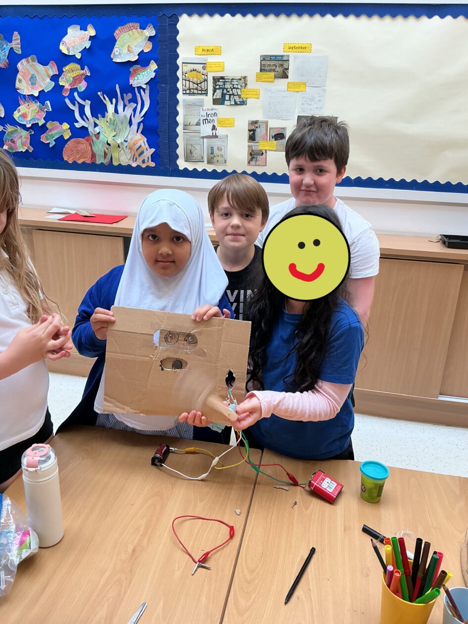 They were challenged to create a model of the Iron Man by making a model which incorporated electrical components and circuits. The photos below show their super work!