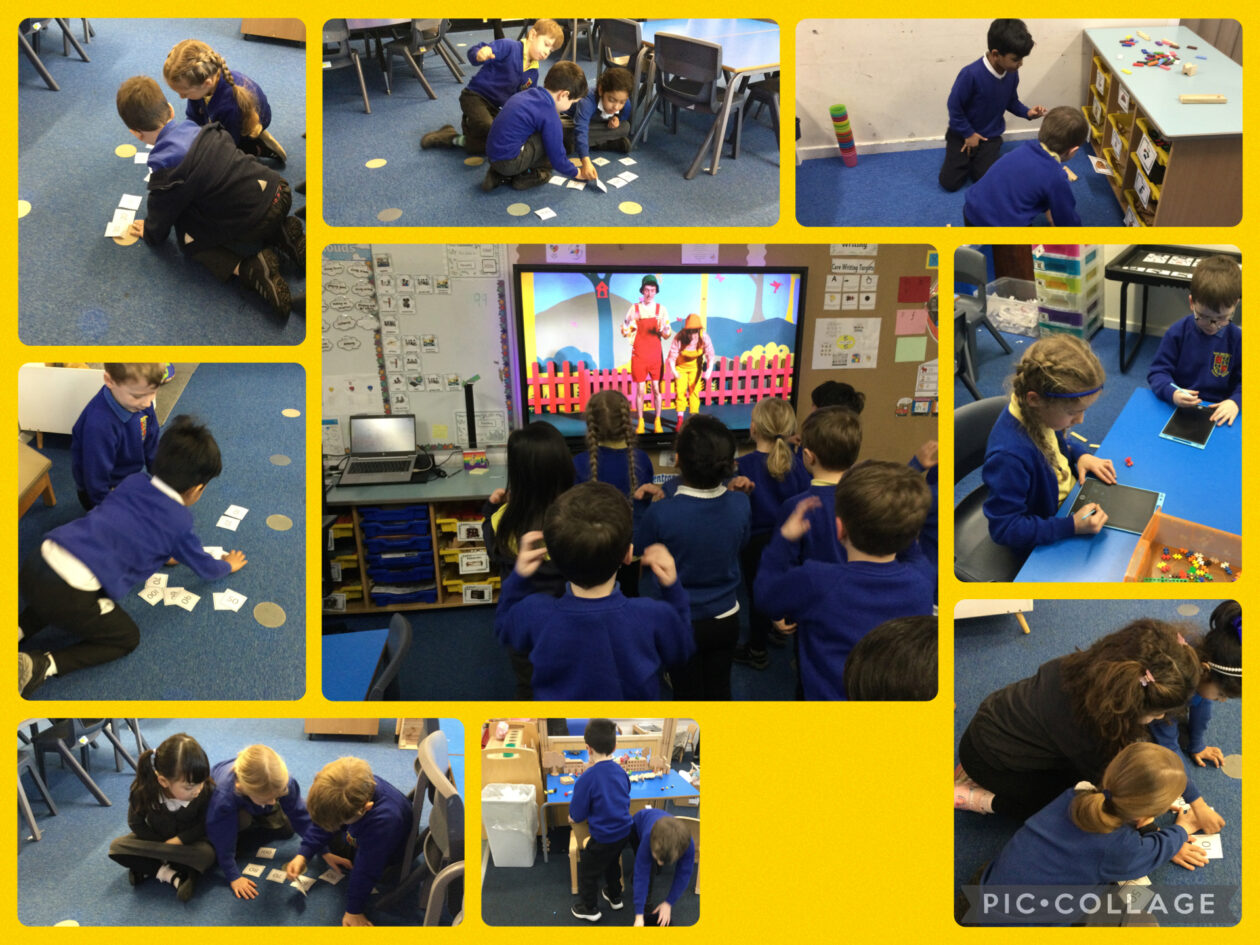 In maths, we have been learning about counting in 10s. We had to order the numbers correctly and then we had to take away one card from another group to see if they knew which number was missing. We also learned about fact families and made 2 addition and 2 subtraction sums with the three numbers.