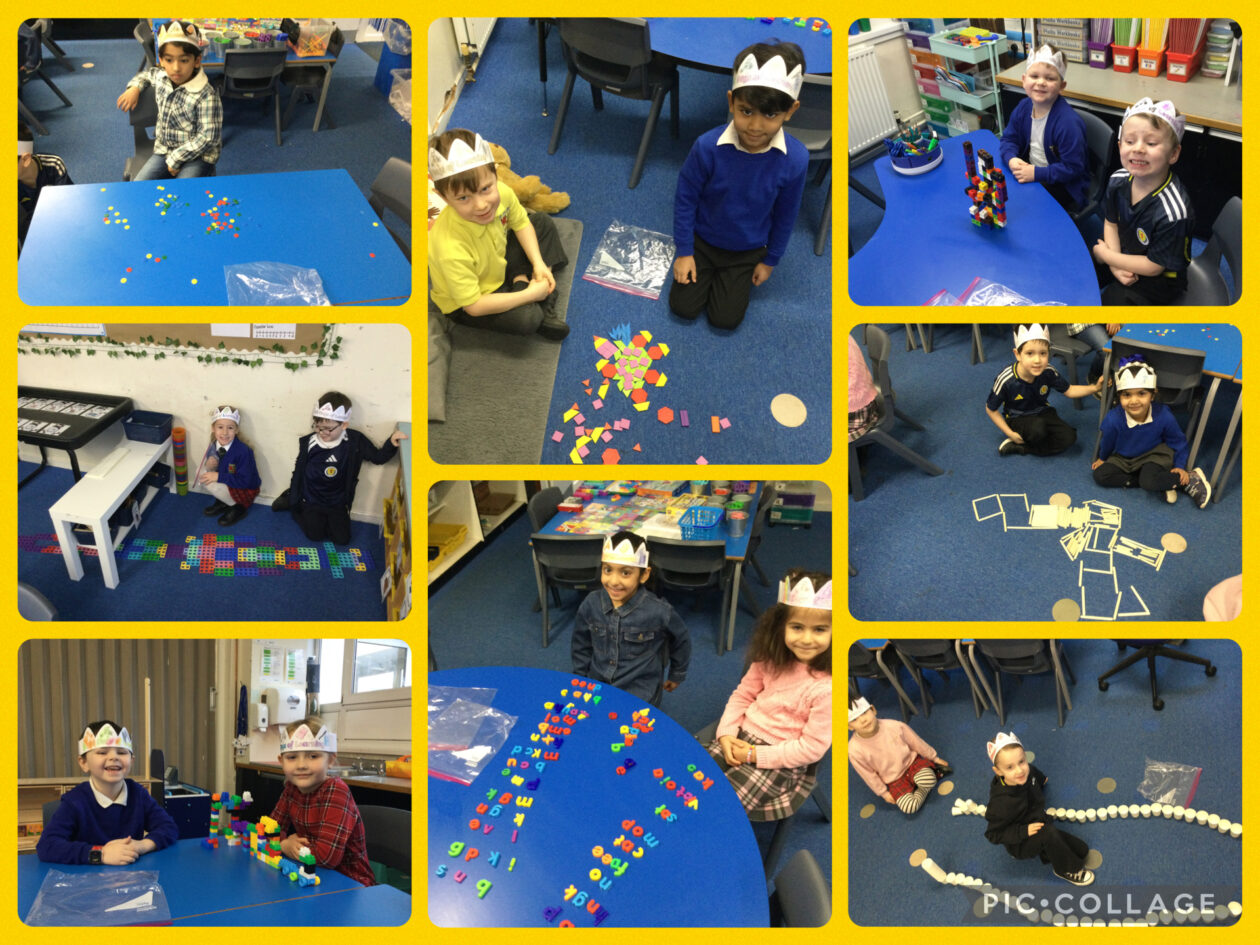 On Friday, we celebrated 100 days of Primary 1. We took part in a challenge to be creative to make things with 100 objects, made crowns, took part in a 100 hunt outdoors with our Buddies and got to make a 100 snack take home to share with our families. We all agreed that this was the highlight of our week!