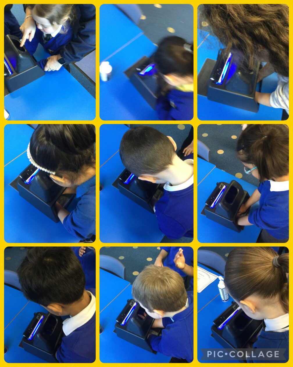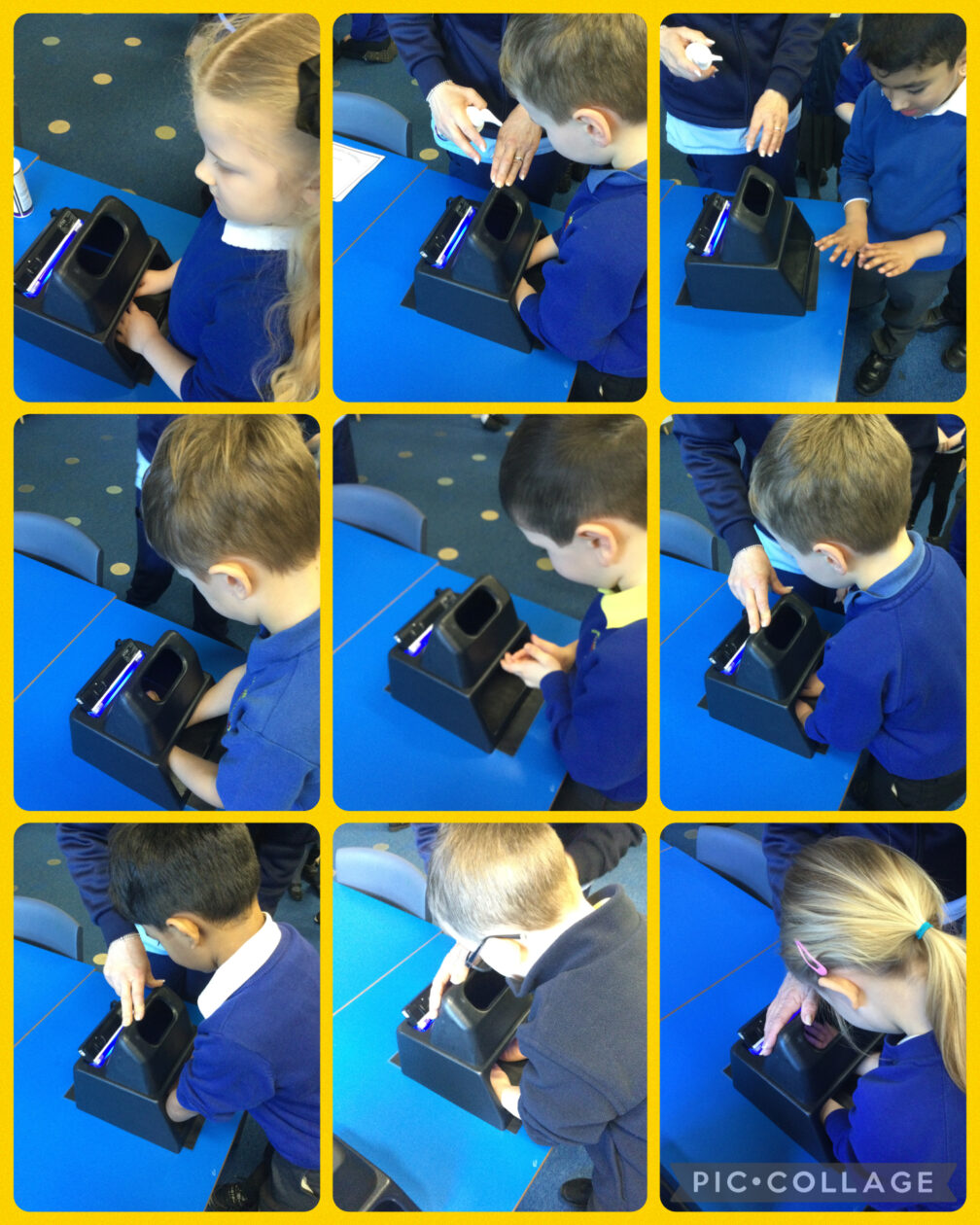On Wednesday, we had a session with the school nursing team all about handwashing. We got to put special ‘germs’ on our hands and look at them under a special light. We then had to wash our hands and look under the light again to see if we had done it properly.