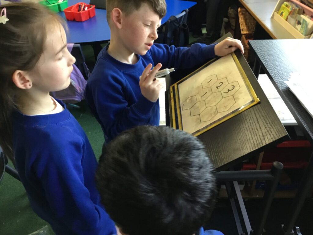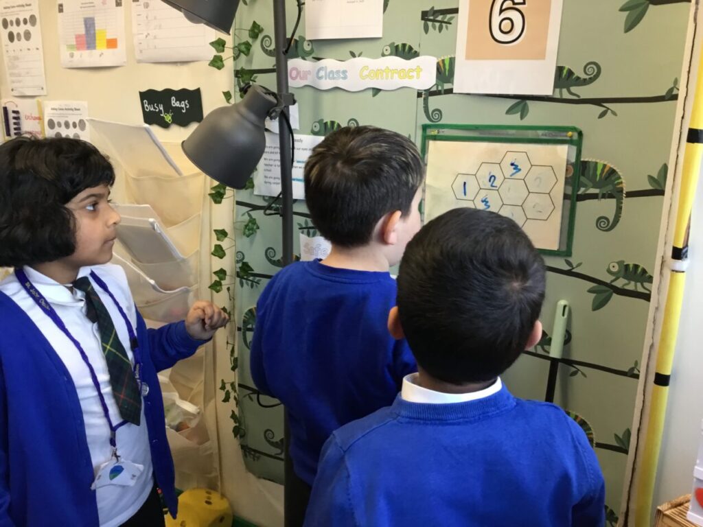 Viaan loved the Building Thinking Classroom session were the children worked in randomized groups to solve some problems. Ask your child what the BTC rules are! This week the children had to place numbers inside some hexagon shapes listening to instructions such as, ” The number 1s are not to touch the number 3s” etc. The children all loved this and are looking forward to more BTC sessions next week.