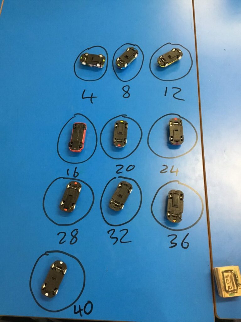 Tyler T enjoyed learning about the 4 Times Tables. We looked at lego pieces with 4 spots, cars with 4 wheels and white boards with 4 corners to help us use this Times Table in a real life context (see photo below).