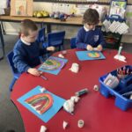 After exploring the Bible story of Noah and the Ark this inspired our art activity for the week. We created painted rainbows 🌈 and added texture to them with cotton wool ⛅️. We thought about the story of Noah and how God wants us to listen to him even if others try to convince us not to.