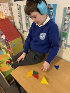 In class, some children played with the dienes materials again, creating different amounts. The 3d shapes were popular with most children exploring them during free- play (choose time). We’ve had some time to develop our understanding of patterns and this will continue next week. We continue to develop our literacy skills at our own individual levels.