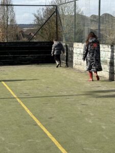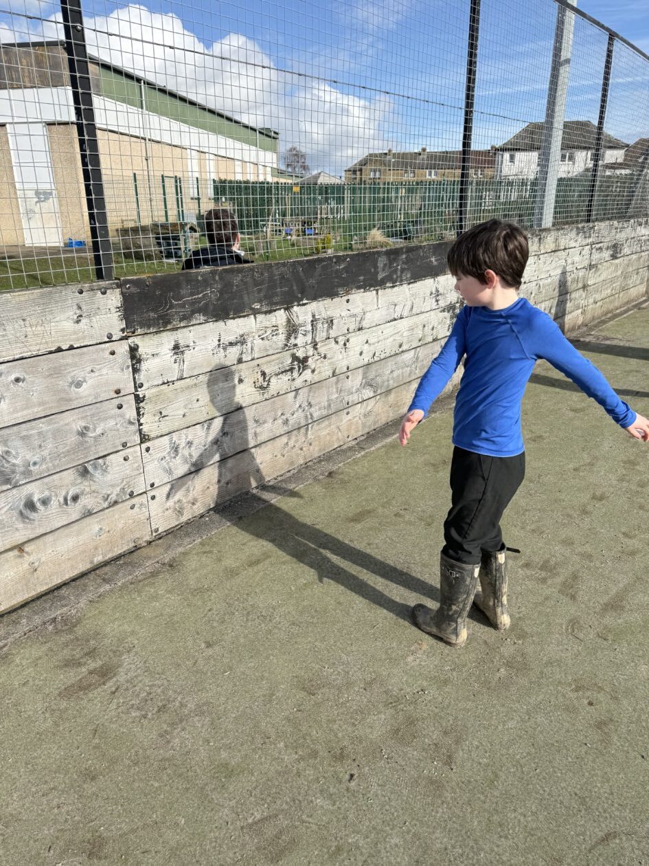 We’ve made the most of some lovely weather – playing in the field and the kick pitch. Several children explored their shadows on the kick pitch fence.