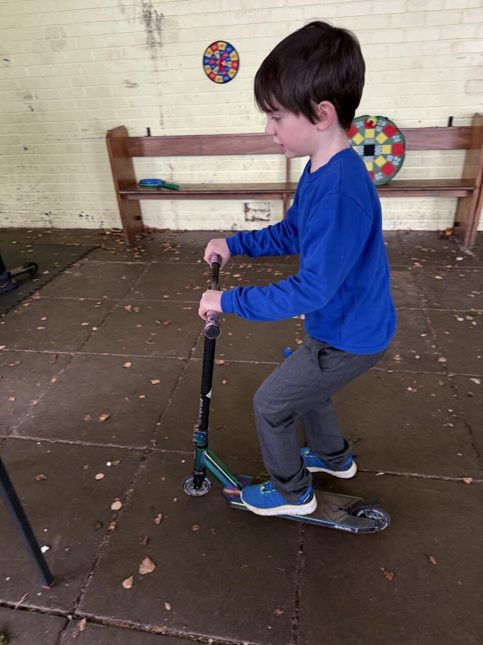 The class enjoyed play time in the ‘Shed’. Several of the children are developing their skills on the scooter- becoming more confident each time.