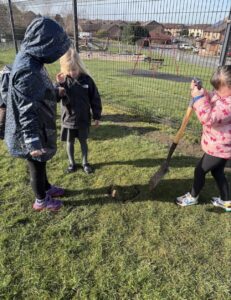Yesterday during outdoor learning with Miss Nelson, Primary 3 had a fantastic time planting seeds. The children enjoyed getting hands-on in nature, learning how to plant and what plants need to grow. They worked together to dig holes, place the seeds in the ground, and talked about how these seeds will grow into trees in the future.