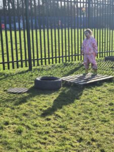 We have also found time to play with bouncing putty and sensory tuff trays…along with time on the Kick Pitch and Trim Trail!