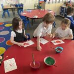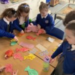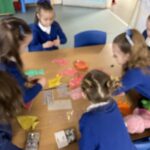 In number work we have been learning about sharing and making equal groups. We have shared out different items with each other making sure everyone had an equal amount, this makes it fair. To stretch our learning we then worked on adding equal groups together. As a challenge Primary 1 requested to learn how to count in 2โs.