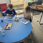 During art we made water colour sea scenes and added tropical fish to them, We were focusing on our brush stroke work making them look like ๐ waves. We talked lots about what the sea looks like , if is was smooth or wavy and if it was all the one colour. After our fish dried we added details to them and put them on our ocean scenes.