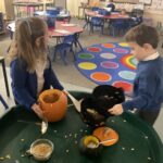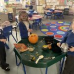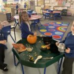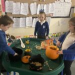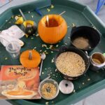 To start the week we read the story Pumpkin 🎃 Soup, this inspired us to make our own pumpkin soup in our tuff tray. We had lost of fun scooping out the pumpkins and mixing them with lentils and water. Lots of skills used and plenty of imagination 💭