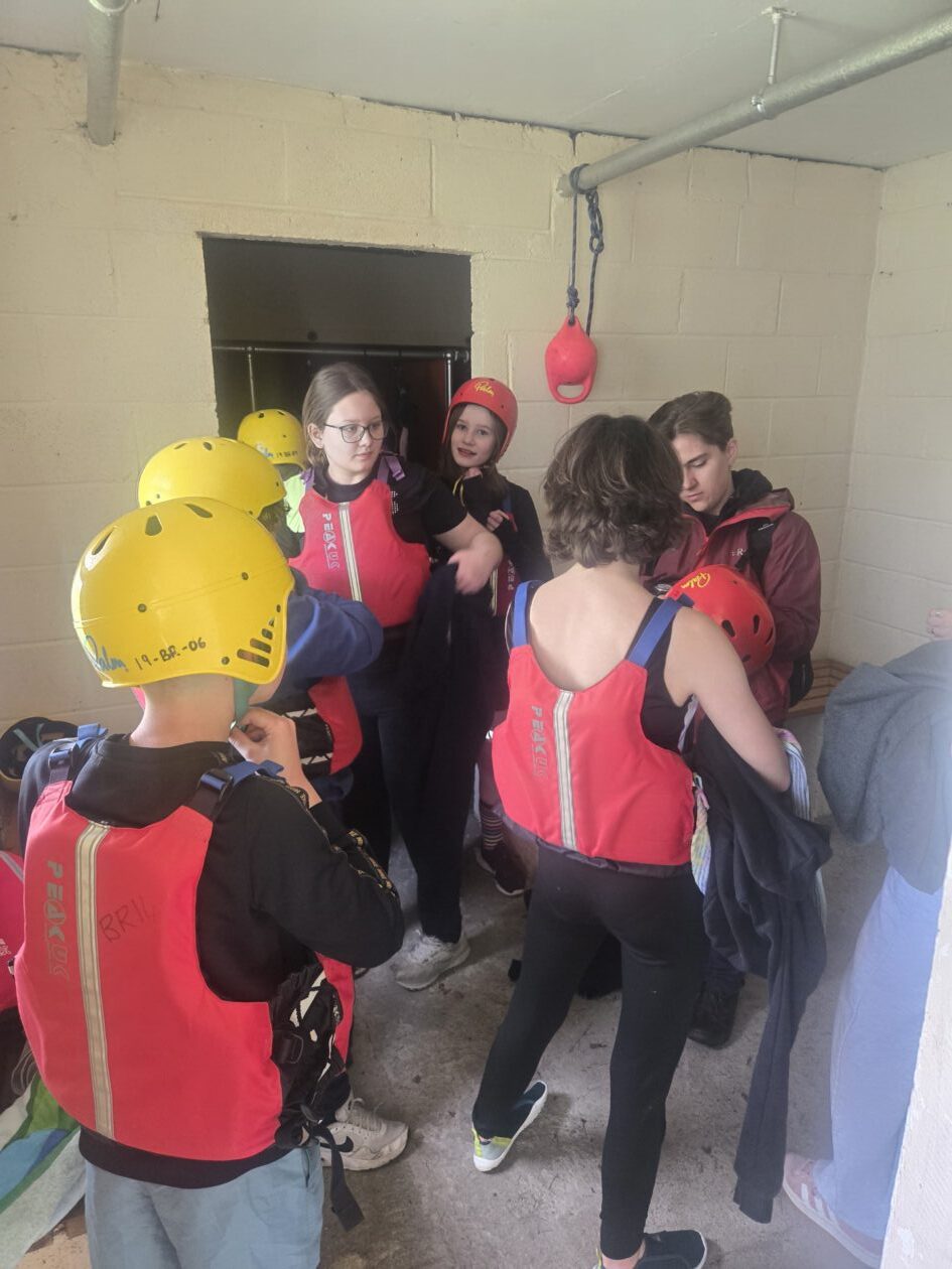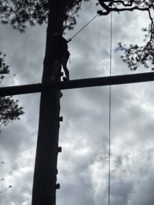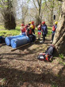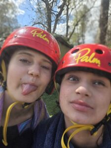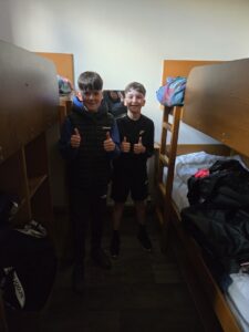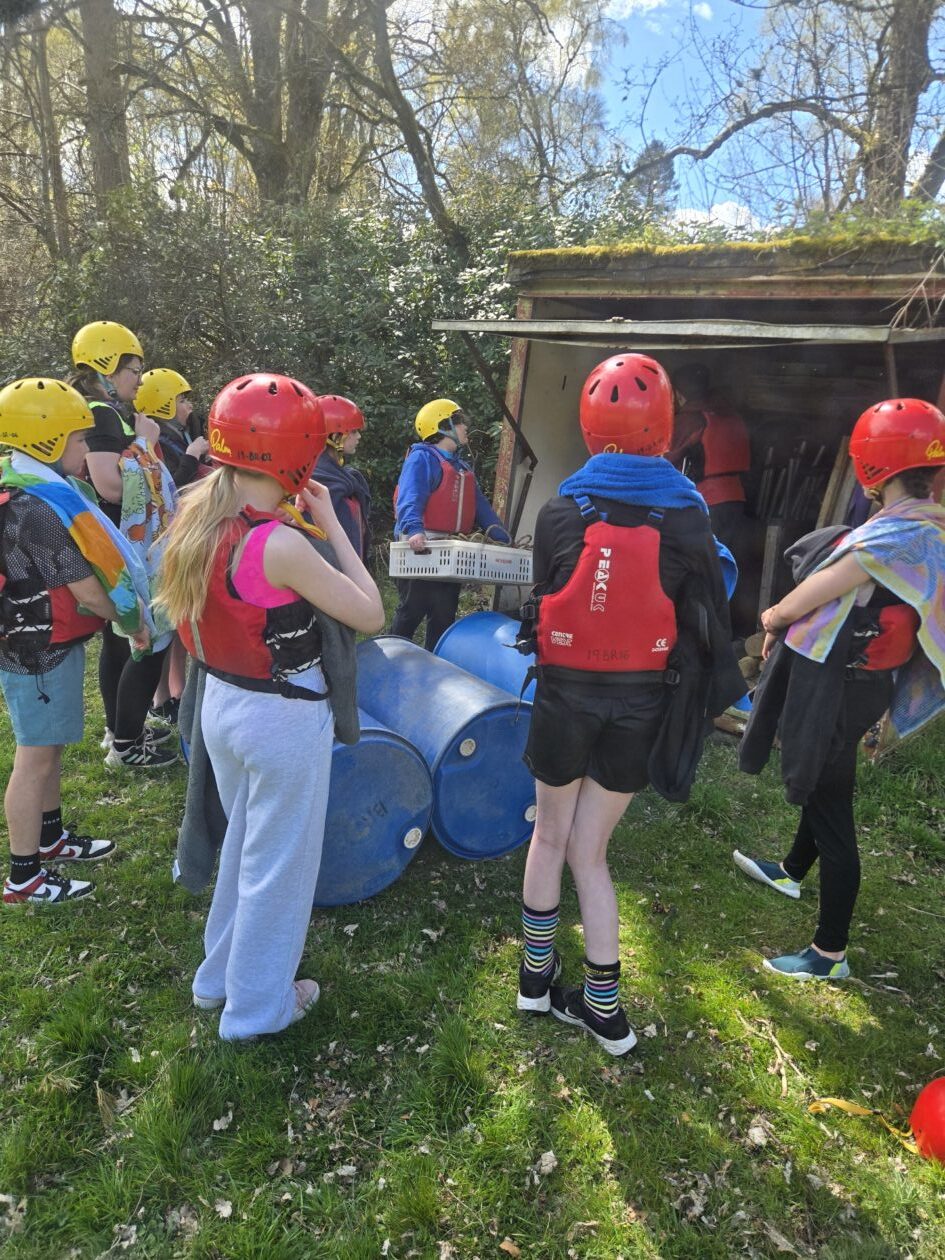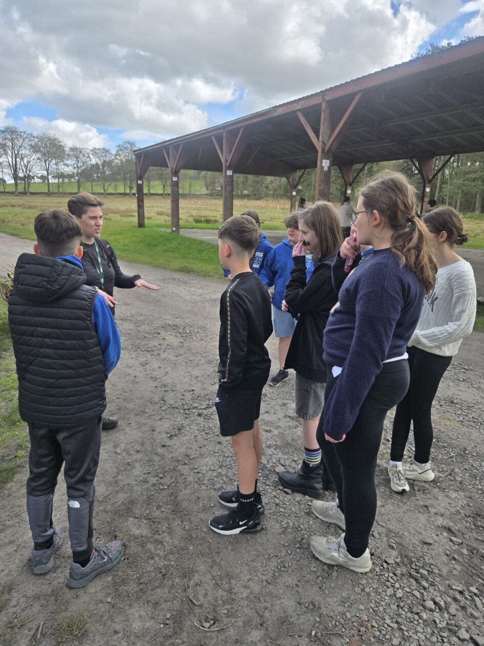 Good evening from a sunny and busy Broomlee Outdoor Centre. What a busy start to our P7 Camp. After an uneventful bus journey, we were welcomed by Dylan, our Supervising Tutor. Fire regulation talks then room organising (special mention to Michael and JJ who made their beds very quickly) was followed by our 1st Group Activity. Group 1 were raft building and group 2 were high in the trees doing the Cat Walk. Lots of challenges and working together but we were resilient and helped each other succeed. The Raft Group 1 built was christened ‘The SS Mary’. She didn’t sink- this time!