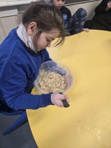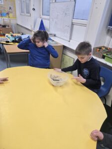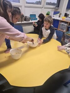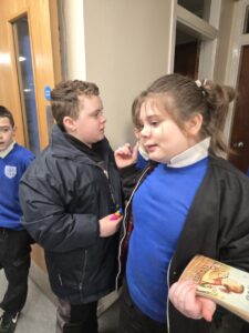 In our writing we were learning about Rabbie Burns. We planned a Birthday Party for him on Thursday and even had our own Burn’s Supper as the menu. Dominic and Laura loved the haggis. Shay and Nathan like the Tunnock’s Teacakes and the Irn Bru was a big hit with everyone!