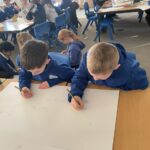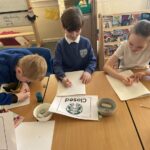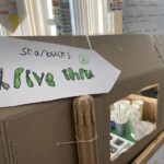 At the beginning of the new term we had our business meeting to decide what we wanted our house corner to be. Jenson chaired the meeting and Macie took the minutes. Everyone had lots of great ideas but in the end, after a fair vote, it was decided to turn it into a Starbucks. Everyone has been busy designing and creating different parts of the coffee shop for play. We designed the outside and inside, we have a drive through window with a headset to speak to the customers, a road and some cars. We made menus, snacks, cakes, drinks, ice cubes, a fridge for storage and lots more. We look forward to having lots of time to play and learn in our new area.
