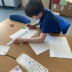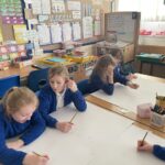 In maths we have started our work on Multiplication. We used lots of practical equipment to help us learn different strategies to help us. We can use repeated addition, skip counting and arrays. P3 have been working on the 2 and 5 times tables and P4 have been working within the 3 and 4 times tables.