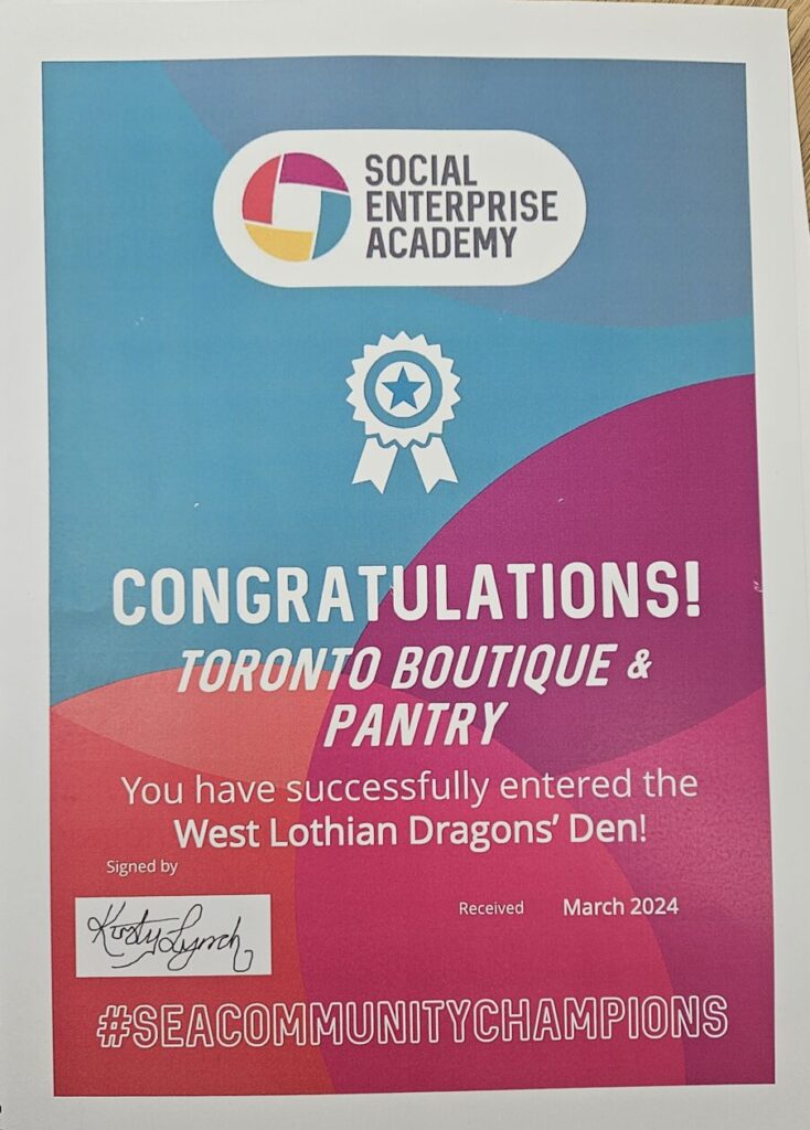 On Wednesday this week a group of our P5 and P7 children attended West Lothian’s Dragons Den event where they pitched their social enterprise idea to a panel of local businesses in the hope of gaining investment in their business The Toronto Boutique and Pantry.