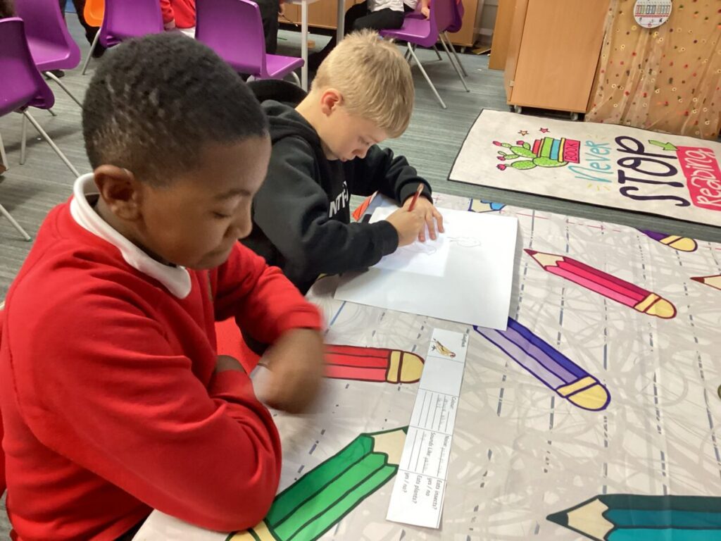 Today as part of our maths lesson we went out to the school playground on a pattern hunt. We found different tree barks, arrangements of plants, games markings, paving stones, brick walls and windows to name a few! Lots of collaboration and creativity!